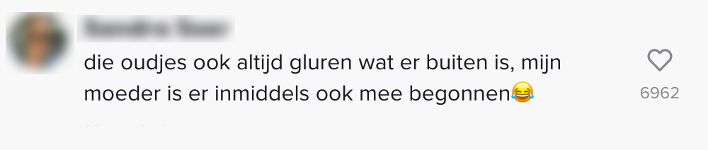 1. Oma Elke ziet door het raam iemand op straat lopen waar ze niet bepaald fan van is.