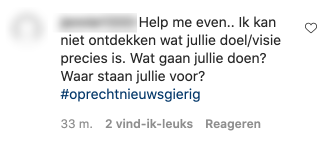 5. Al is het doel nog niet helemaal duidelijk voor potentiële volgers.