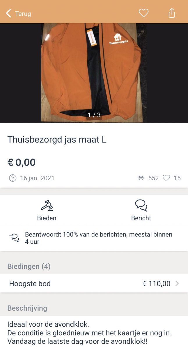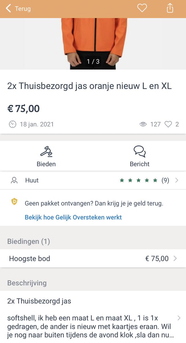 1. Tim neusde rond op Marktplaats en kwam meerdere keren deze jas van Thuisbezorgd tegen.