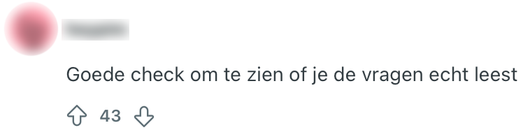Of je nou een vriend helpt met z’n oersaaie scriptie of je geweldige ervaring op Lowlands wil delen: je hebt ongetwijfeld weleens een enquête ingevuld. In zo’n vragenlijst kom je altijd wel een paar vragen tegen waarbij je je afvraagt wat je er in vredesnaam mee moet. Déze Reddit-gebruiker doet mee aan een onderzoek van het NIPO en krijgt een meerkeuzevraag over recente aankopen. Allemaal leuk en aardig, totdat-ie de antwoordopties ziet…