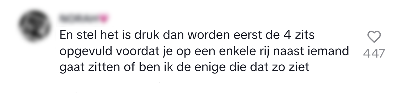 Mensen die ’s ochtends in een bomvolle trein stappen, weten donders goed dat ze waarschijnlijk geen zitplek hebben. Als je geluk hebt, vindt je een puntje van een uitstekende stoel of een zacht plekje in het gangpad. Maar waar ga je zitten wanneer het niet zo druk is in de trein? Volgens Rik is er maar één logische stoelverdeling wanneer je bij een ander persoon in een vierzits plaats neemt. Toch is niet iedereen het helemaal met zijn ongeschreven regel eens.