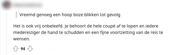 De meeste mensen die dagelijks met het OV reizen, zijn aardig op de hoogte van alle ongeschreven treinregels. Je geeft je plek op als er een bejaard persoon de trein binnenkomt, eten met een sterke geur laat je thuis en bellen doe je zachtjes. Maar wat zijn de ongeschreven regels als het gaat om iemand groeten in de trein? Een redditor stelt deze vraag en de meningen zijn erg verdeeld.