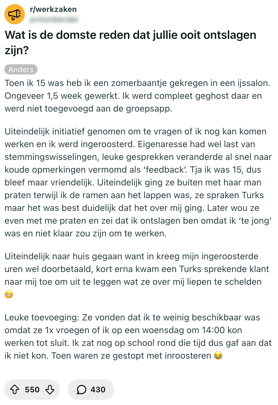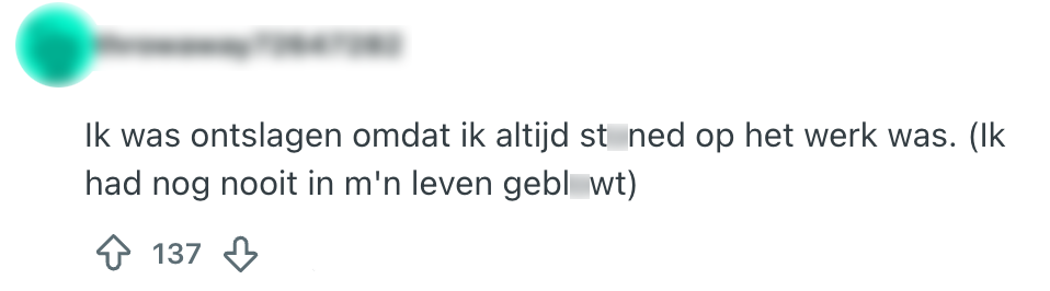 Als sollicitant moet je heel over heel wat drempels stappen om jezelf een bedrijf binnen te yappen. Je schrijft een motivatiebrief waarin je al je fantastische kwaliteiten uit de doeken doet, stuurt die samen met je cv op, wordt uitgenodigd voor een gesprek (of twee), maakt een proefopdracht, en als alles goed gaat, kun je trots op LinkedIn aankondigen dat je een ‘nieuwe uitdaging’ hebt gevonden. Maar zelfs nadat je het contract hebt ondertekend, kan het nog misgaan. Een Reddit-gebruiker vraagt naar de domste reden waarom mensen ooit ontslagen zijn – en geloof ons: de verhalen gaan van kwaad tot erger.