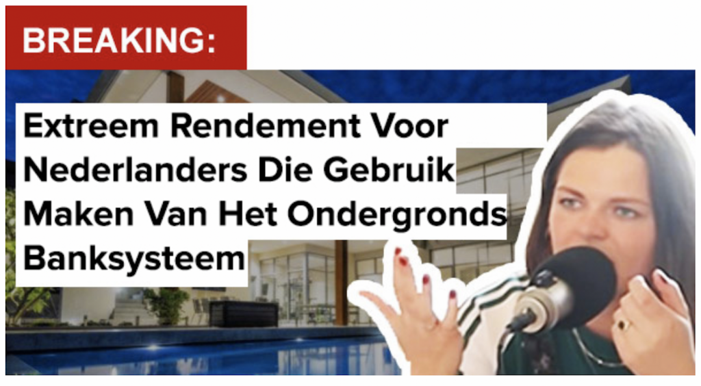 Toch heel kort: Cato Caroline vertelt hoe snel zonder moeite belachelijk veel geld verdient met het ondergrondse bankensysteem, halverwege de nep advertentie wordt duidelijk dat dit systeem draait om cryptovaluta en het mooiste van alles: iedereen kan het doen. Je hoeft je alleen maar in te schrijven bij een platform waar professionele adviseurs (scammers) je gaan helpen en je om te beginnen alleen maar even 250 euro hoeft in te leggen. Maar, zo beloven ze je, dit heb je binnen no time terugverdiend (is natuurlijk niet zo).