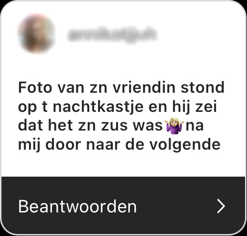 1. Achteraf ook niet heel normaal om een foto van je zus op je nachtkastje te hebben.