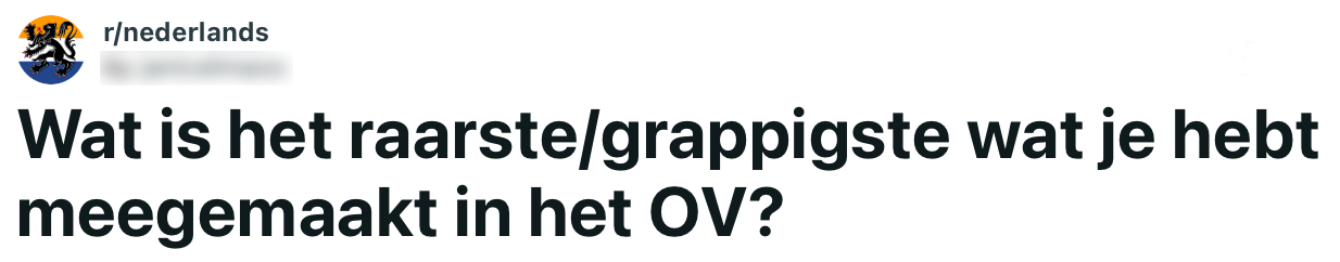 Veel Nederlanders brengen stiekem best veel tijd door in het openbaar vervoer. Daarom is het ook niet zo gek dat mensen nogal opmerkelijke dingen meemaken tijdens hun reis. Iemand op Reddit was benieuwd naar dit soort anekdotes en de reacties inclusief merkwaardige ervaringen stroomde met een hoge snelheid binnen.