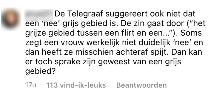 De Telegraaf postte gisteren een tweet en een artikel ter promotie van hun nieuwe podcast-aflevering. De aflevering gaat over het ‘grijze gebied’ tussen flirten en verkrachting. Vier jonge journalisten gaan hierover in discussie. De omschrijving van de aflevering komt bij veel mensen heel verkeerd aan. Want, kan je dat wel een grijs gebied noemen?