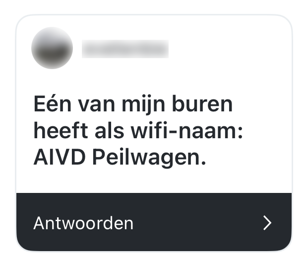 Als je denkt aan netwerken, komen er allerlei dingen naar voren. Je kan bijvoorbeeld denken aan de talloze connecties op LinkedIn, de hagedis-mensen die alle landen regeren, of simpelweg gewoon aan wifi. Dat laatste is natuurlijk het achtste wereldwonder waar we oneindig veel dingen aan te danken hebben. Om zo’n geweldige uitvinding extra in de schijnwerpers te zetten bedenken sommige Nederlanders erg creatieve namen. Wij vroegen vorige week in onze Instagram stories naar jullie bijzondere wifi-namen en door al die antwoorden zijn we nog LAN niet klaar met lachen.