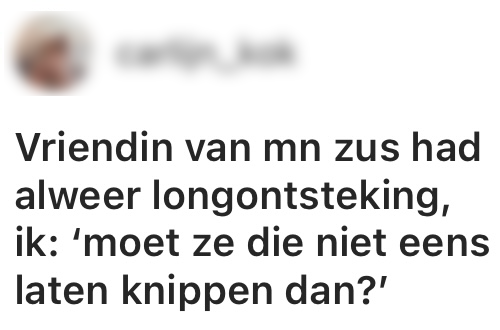 11. Deze persoon vraagt zich waarschijnlijk ook al jaren af wie nou toch die zeurende sjembek is.