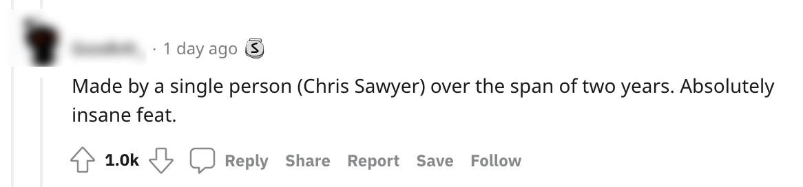 2. Leuk feitje over de eerste Rollercoaster Tycoon: die game werd dus door één persoon in elkaar gezet.