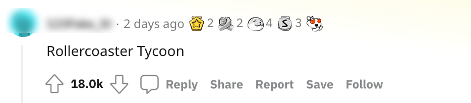 1. Een van de meestgenoemde games: Rollercoaster Tycoon. En zeg nou zelf: het alleen al bekijken via een YouTube-video is heel rustgevend.