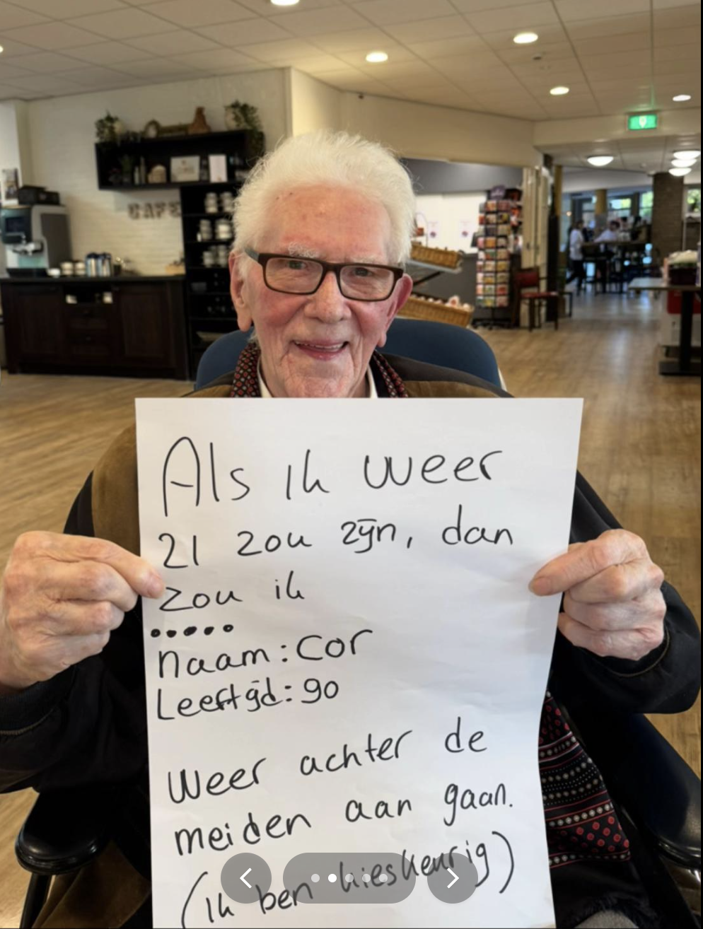 Ze zeggen wel eens dat de tijd vliegt als je het naar je zin hebt. Vandaar dat je jonge jaren voorbijvliegen en dat je een afkowobo nodig hebt om nog enigszins met je jongere collega’s mee te kunnen praten.Maar hoe ouder je wordt, hoe anders je naar je jeugd kijkt. Thijmen vraagt de ouderen in het verzorgingstehuis waar hij werkt wat ze zouden doen als ze weer 21 jaar zouden zijn, en daar komen flink wat bijzondere antwoorden uit voort.