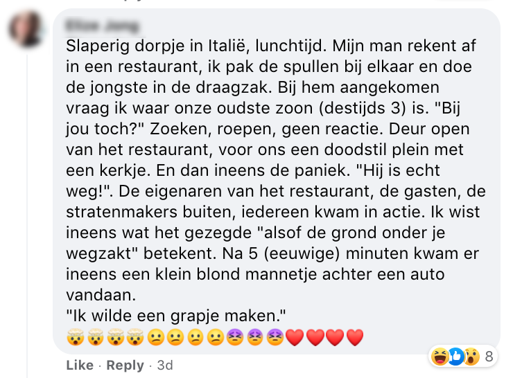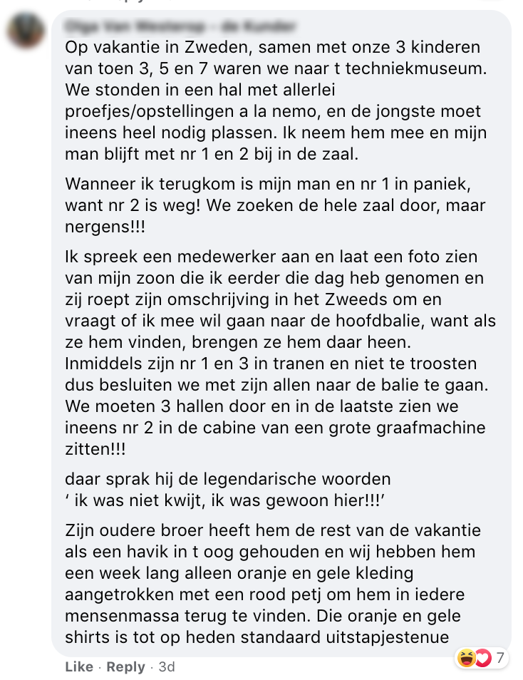Het is als ouder een van je grootste nachtmerries. Je verliest je kind heel even uit het oog, en plotseling is hij of zij nergens meer te bekennen. Meestal is er niks aan de hand en was het kind even afgeleid door iets wat er interessant uit zag. Maar toch kan het voor veel stress en paniek zorgen. Dennenice was benieuwd naar de spannende verhalen van ouders toen ze hun kind kwijt waren. En daar werd massaal op gereageerd.