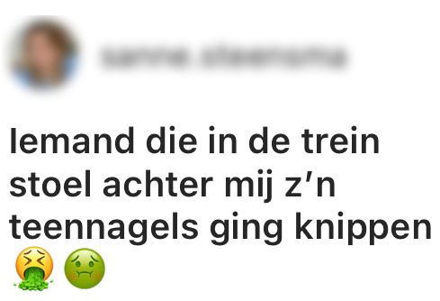 Naar aanleiding van dit artikel over verhalen in het OV vroegen wij jullie op Instagram: wat is het raarste dat jíj in het openbaar vervoer hebt meegemaakt?  Van haringen tot teennagels: het leverde een hoop tenenkommende reacties op.
