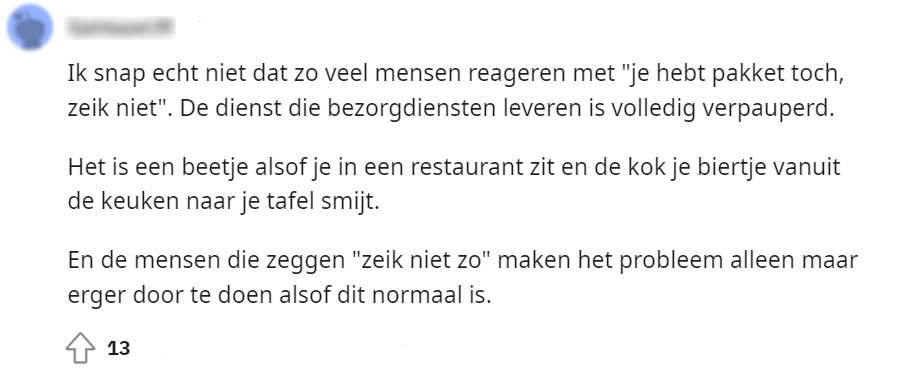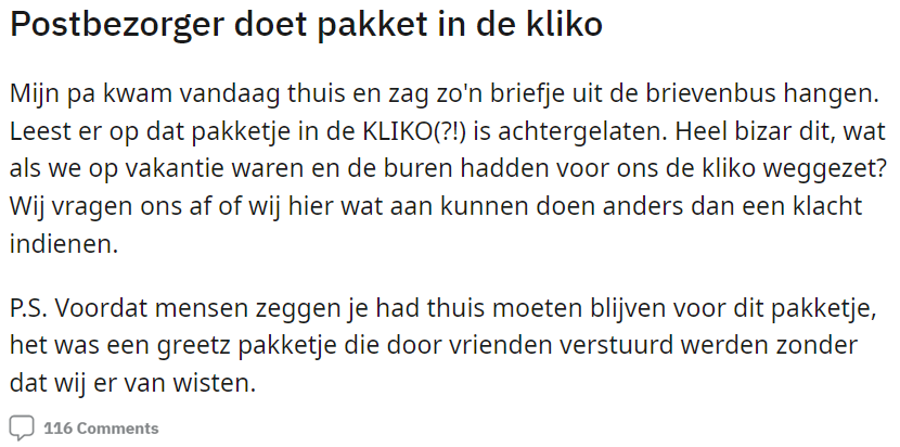 1. In dit bericht vertelt een Reddit-gebruiker dat er een luchtje aan deze bezorgmethode zit.