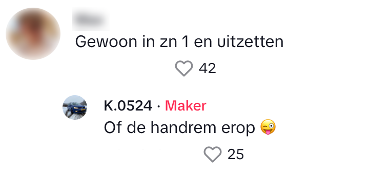 4. Terwijl ze Kay in de comments nog een gratis lesje parkeren geven…