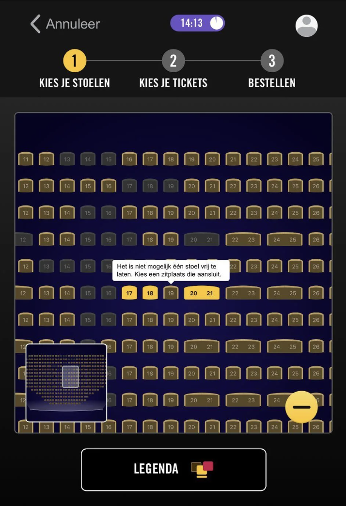 1. Deze bioscoopbezoeker wil vier stoelen in het midden boeken, maar daar steekt Pathé een stokje voor.