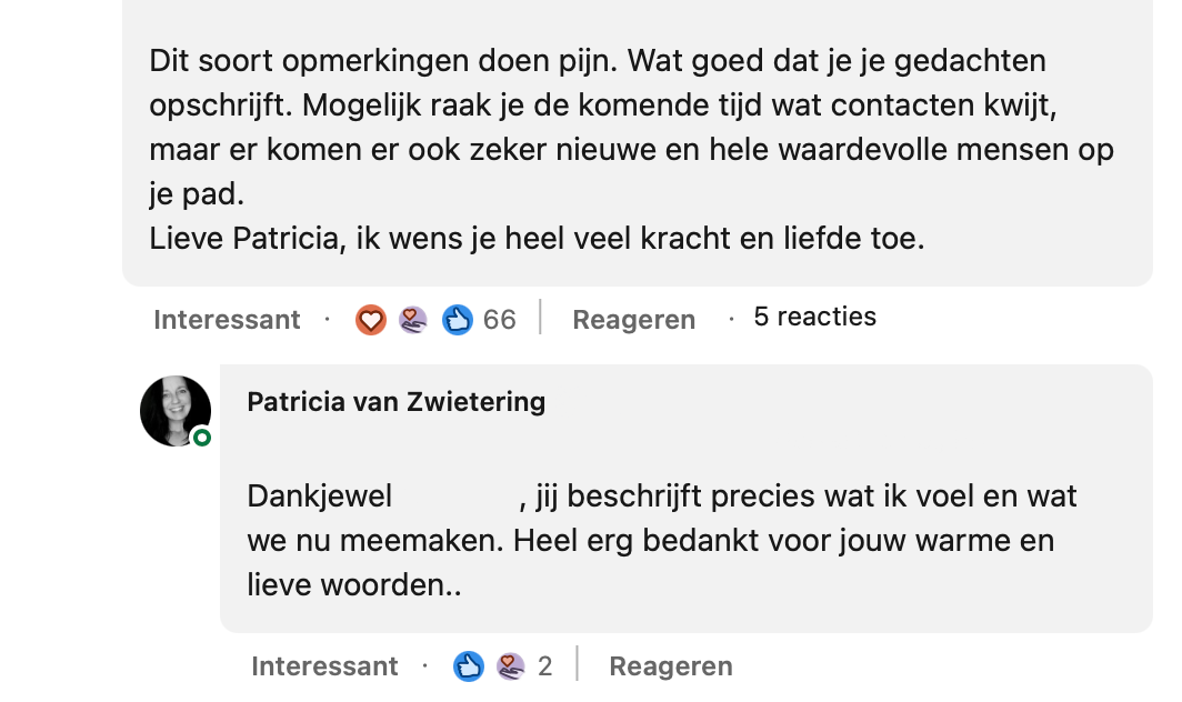 6. Zo denkt Patricia erover, maar ook mensen in de reacties kunnen zich vinden in haar verhaal.