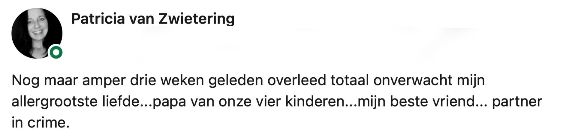 1. Het overlijden van Patricia haar partner is nog maar kort geleden