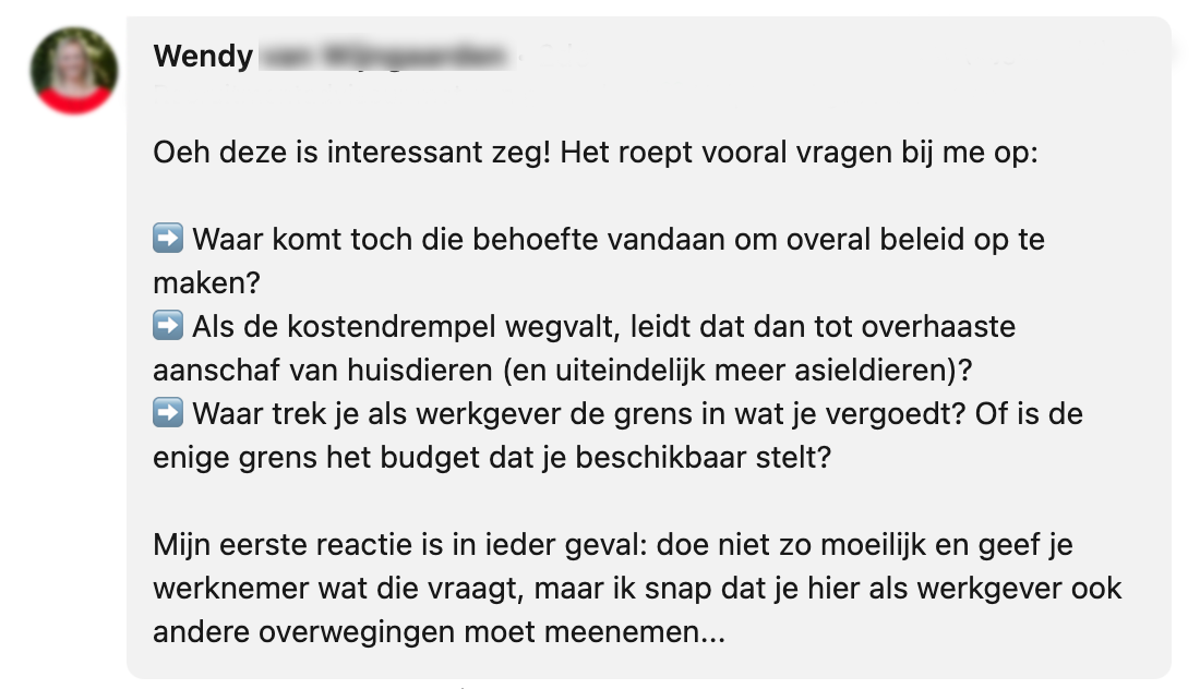 Werknemer wil hond kopen van vitaliteitsbudget en dit is voer voor flinke discussie