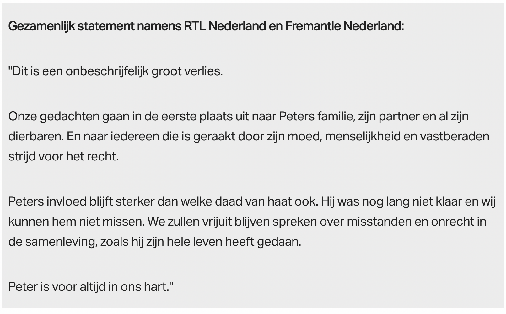 13. Wij wensen alle nabestaanden uiteraard veel sterkte. Rust zacht, Peter.