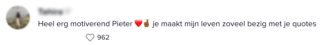 2. Uit de reacties blijkt in ieder geval dat life coach Pieter voor veel motivatie zorgt.