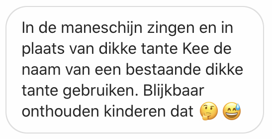 15. ‘Onze Lisa gaat nooooit verloren, Trek ze aan de oren’.