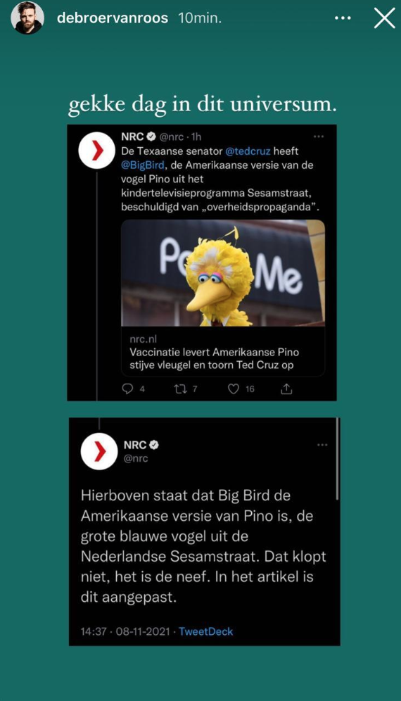 Afgelopen weekend maakte, de neef van ‘onze Pino’ uit Sesamstraat, Big Bird bekend dat hij gevaccineerd is. Hier ontstond direct veel commotie over. De bijbehorende discussie is nu ook naar Nederland overgewaaid. De één vindt het niet kunnen dat een kinderfiguur als medische propaganda wordt gebruikt, en de ander vindt het juist goed dat kinderfiguren deze boodschap brengen. Daarnaast heb je natuurlijk ook nog de twitteraars die zo’n bijzondere discussie aangrijpen om de beste woordgrappen tevoorschijn te toveren.
