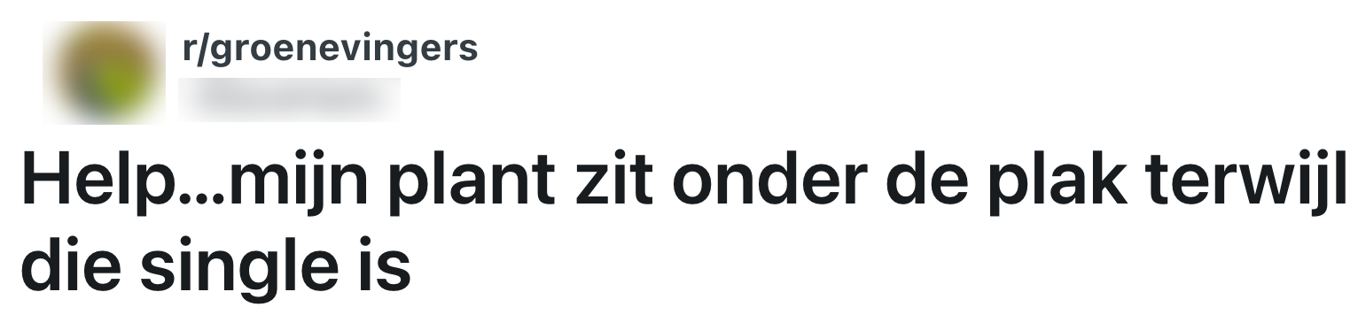 De een heeft vingers zo groen dat zelfs Elphaba uit Wicked er jaloers op zou zijn, de ander kan een cactus nog laten lijden door er alleen maar naar te kijken. Gelukkig is er altijd hoop: je kunt een plant altijd proberen te redden door advies aan mensen mét groene vingers te vragen. Deze Reddit-gebruiker doet een poging, diegene zit namelijk met de handen in het haar wanneer blijkt dat zijn vrijgezelle plant volledig onder de plak zit…