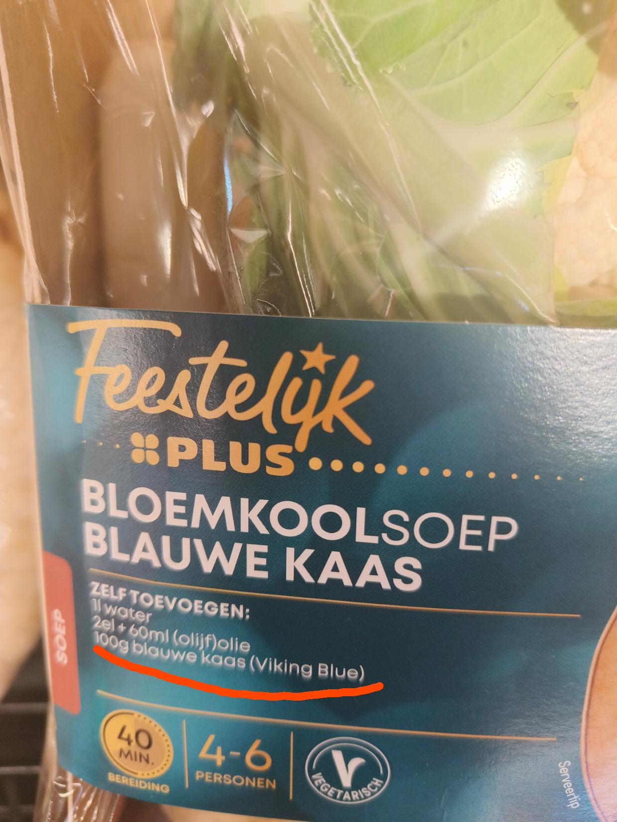 6. Met of zonder blauwe kaas, echt gelukkig worden mensen sowieso niet van dit verspakket van PLUS.
