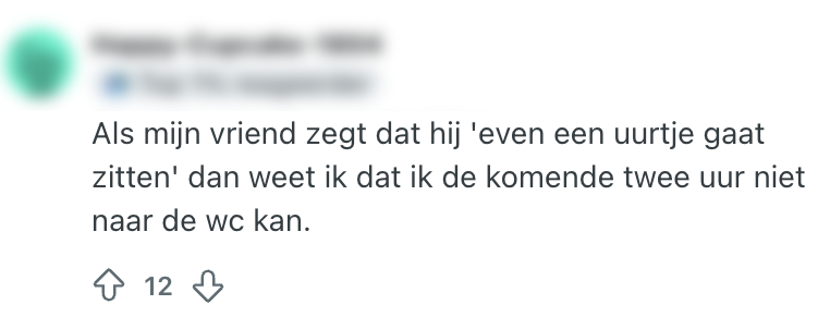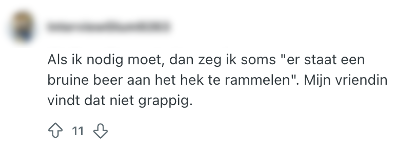 We vallen direct met de wc-deur in huis: iedereen poept. Maar erover praten? Ho maar. Het voelt immers een beetje ongemakkelijk om midden in een vergadering te zeggen dat je moet schijten, of op een eerste date te verkondigen dat je een drol voelt aankomen. Maar als je het doet, doe het dan goed. Precies daarom vraagt een Reddit-gebruiker naar de meest originele manieren om te vertellen dat je moet poepen. En je raadt het al, binnen no time floepen de suggesties eruit.
