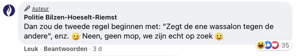7. Intussen wordt er onder het bericht op Facebook ook even gecheckt of het in Bilzen misschien al 1 april is..