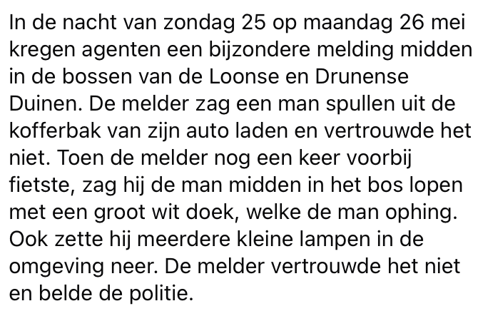 3. De ‘verdachte’ is blijkbaar met goede bedoelingen in het bos, en leert de politie nog effe een waardevol lesje.