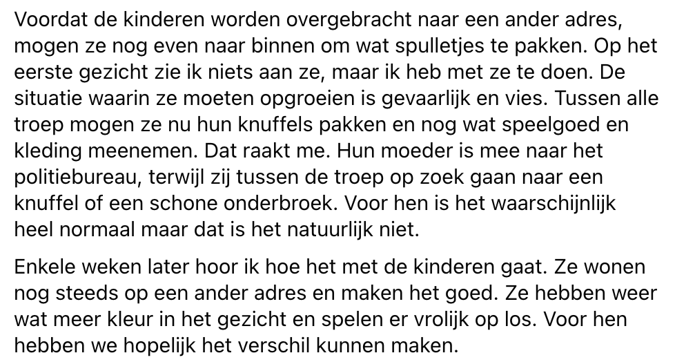 5. De moeder moet mee naar het bureau. Uiteindelijk zijn de kinderen er goed vanaf gekomen. Het gaat goed met ze, maar wonen wel op een ander adres.