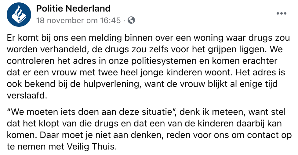 1. Politie Nederland deelt dit verhaal op Facebook. Na de melding willen ze snel handelen.