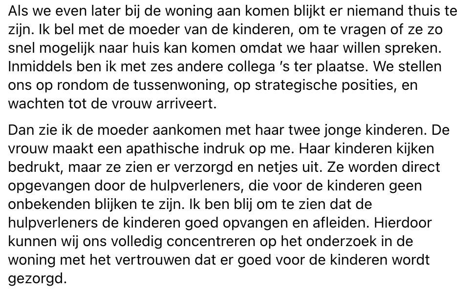 5. De moeder moet mee naar het bureau. Uiteindelijk zijn de kinderen er goed vanaf gekomen. Het gaat goed met ze, maar wonen wel op een ander adres.