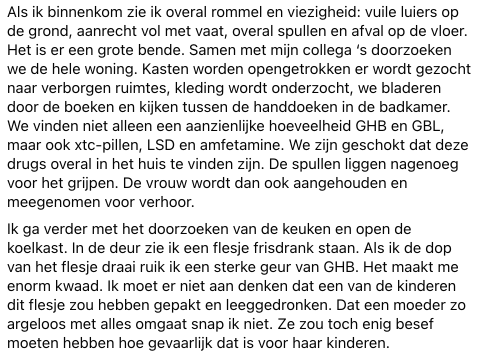 Als je werkt bij de politie, krijg regelmatig te maken met een kijkje in de letterlijke en figuurlijke keuken van gezinnen en huishoudens. Brigadier Martijn maakt het mee in een situatie waar kleine kinderen bij betrokken zijn. Volgens de melding was er sprake van een huishouden dat niet bepaald een veilige situatie creëert voor opgroeiende koters. En dat blijkt zacht uitgedrukt, wanneer ze een bezoek te brengen aan dit gezin.