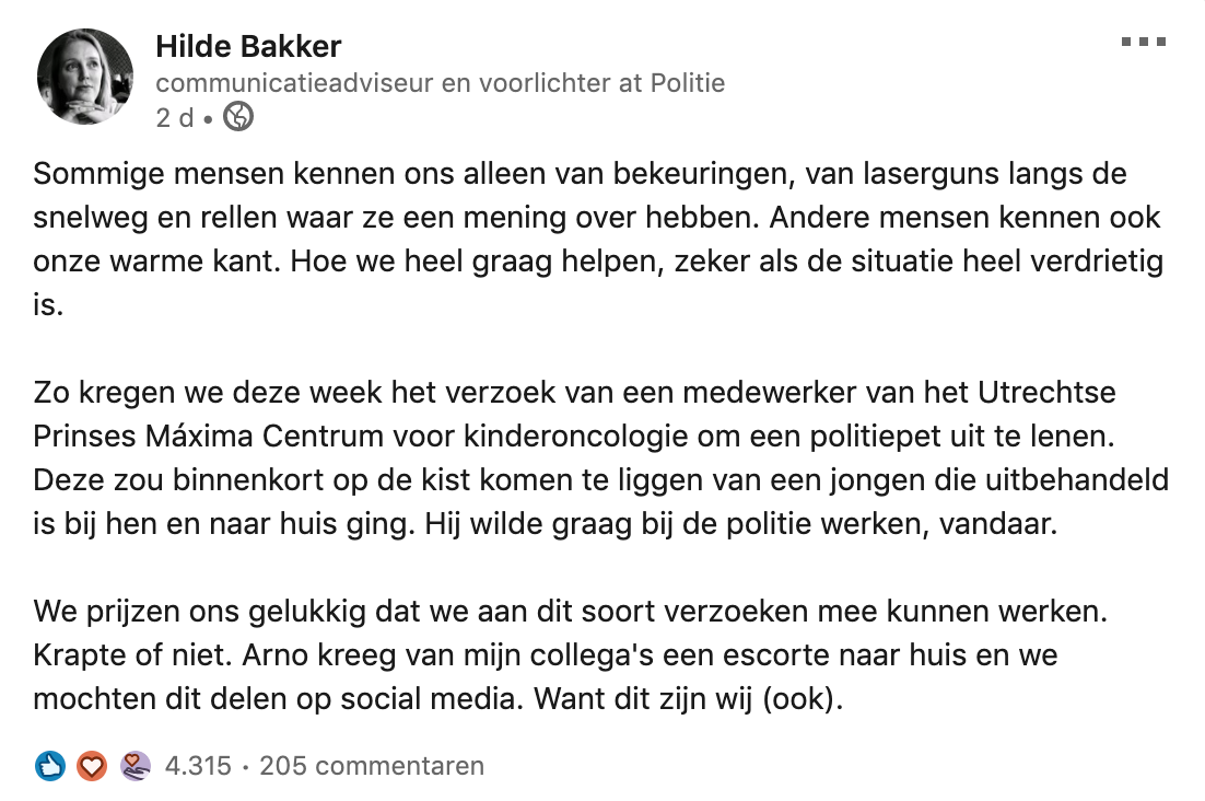 3. Ze krijgen vaak veel kritiek, maar ook deze kant van de politie moet niet over het hoofd gezien worden.