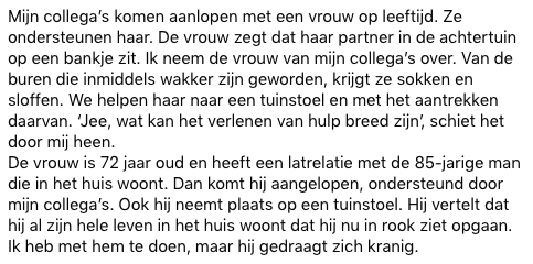 Als het ergens nooit saai is op de werkvloer, dan is dat wel bij de politie. Nadat inspecteur Marloes een heftige gebeurtenis meemaakte met een brand tijdens een nachtdienst, deelde zij haar verhaal op Facebook. Want toen er een melding binnenkwam van een heftige brand bij een oud stel, wisten de agenten wat hun te doen stond.