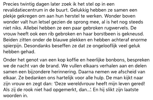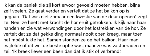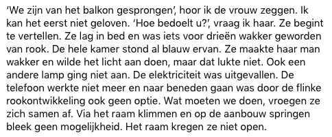 3. Maar daar is heel wat gevaar aan vooraf gegaan. De vrouw begint te vertellen hoe zij het huis uit gevlucht zijn.
