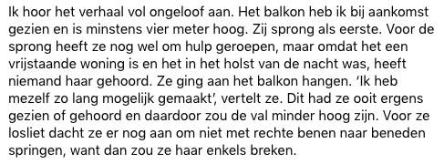 4. Er zat niets anders op dan via het balkon het huis te ontvluchten.