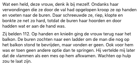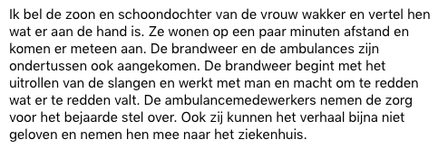 6. Eenmaal beneden deed zij er alles aan om zo snel mogelijk de man te kunnen helpen.