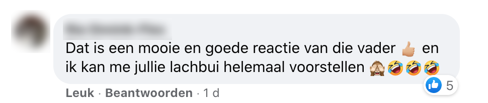 3. Ja, daar sta je dan in je eentje met de slappe lach. De vader kon er minder om lachen.