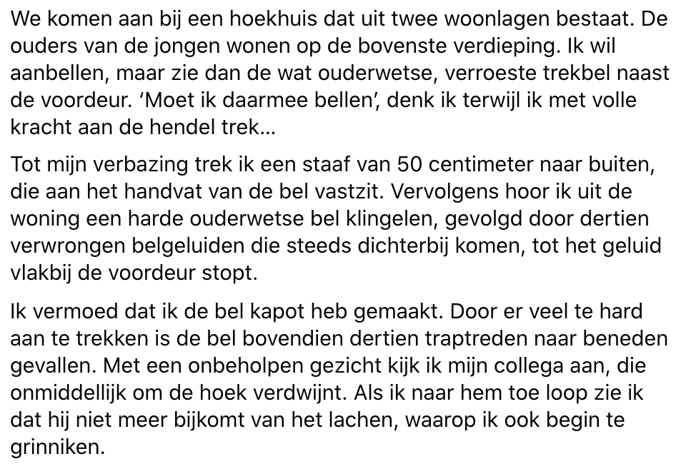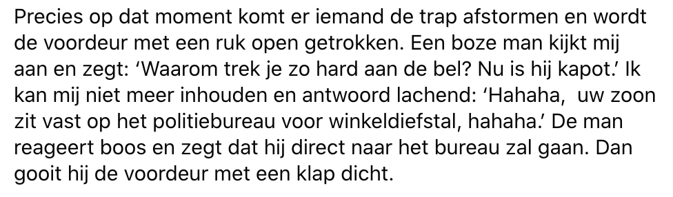 3. Ja, daar sta je dan in je eentje met de slappe lach. De vader kon er minder om lachen.