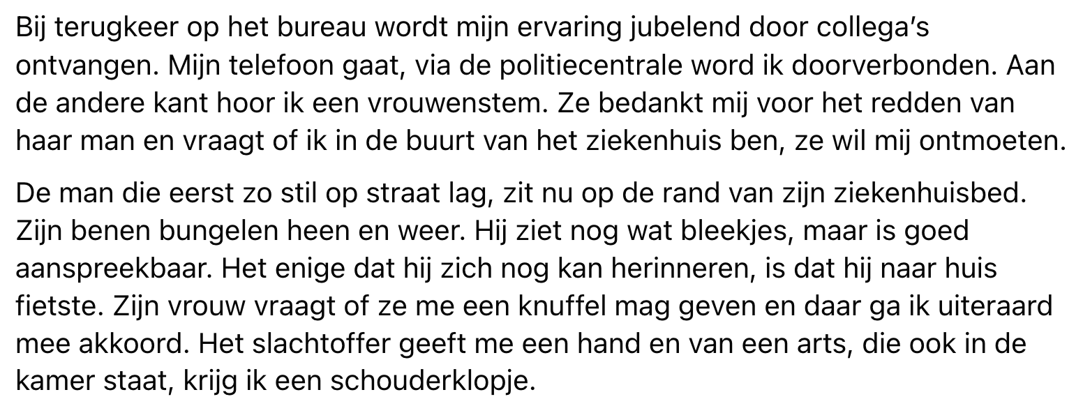 6. Al snel komt de politieagent in contact met de familie van de gereanimeerde man.