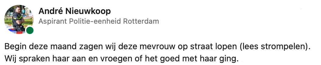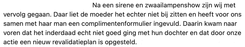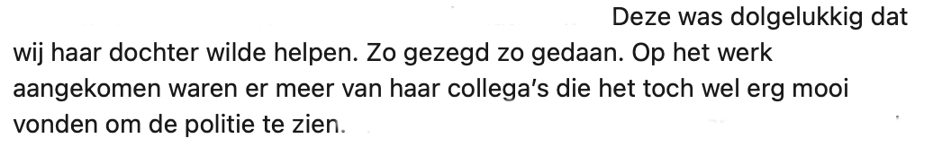 4. Haar moeder was erg blij dat de politie haar even af wilde zetten en ook haar collega’s konden dit bezoek wel waarderen.
