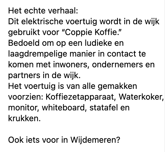 Als je een rondje fietst en in de verte een witte auto met rode en blauwe details ziet, dan check je toch effe subtiel of je verlichting wel goed werkt en of je niet onbewust iets heel illegaals aan het doen bent. Aangezien we allemaal dondersgoed weten hoe zo’n politieauto eruitziet, herkennen we ‘m direct. Wijkagent Merel uit Kortenhoef en ‘s-Graveland laat echter in een Instagram-post zien dat er nog een variant van de klassieke politieauto bestaat, maar met een totáál ander doel.