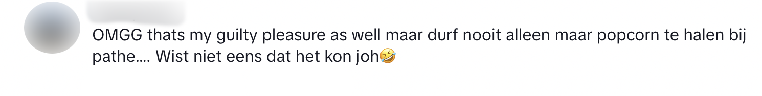 Wat komt er in je op als je aan de bioscoop denkt? Waarschijnlijk gaan je gedachten eerst naar films, maar komen ze daarna al snel bij popcorn uit. Want ja: eigenlijk is het uitzoeken van een snack voor bij de film het leukste van het hele uitje. Liza neemt dit wel heel letterlijk – en ze blijkt niet de enige te zijn.