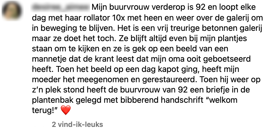 Waar zouden we zijn zonder een goede buur? Nou, nergens. Want heb je even behoefte aan een goed gesprek of heb je behoefte aan een maatje bij het onderhouden van de moestuin in de buurt? Dan is het altijd fijn als je kunt aankloppen bij die ene goede buur. We vroegen jullie naar jullie ervaringen met goede buren en daar kwamen deze mooie verhalen uit.