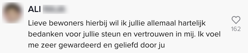 En vooral ook door Ali zelf. Hij vindt de TikTok en besluit ook een hartverwarmende comment achter te laten.